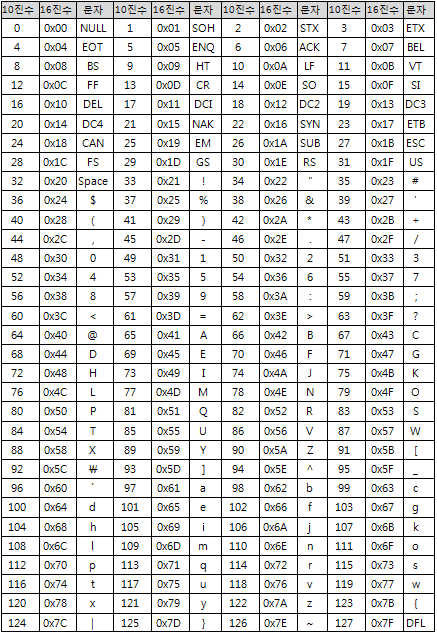 ASCII (American Standard Code for Information Interchange, λ―Έκ΅ μ 보 κ΅ν νμ€ λΆνΈ)λ λ¬Έμλ₯Ό νννλ κ°μ₯ μ΄μ°½κΈ° λ¬Έμ μ§ν© μ€ νλμ λλ€. μλλ λ무μν€μ μ€λͺ μ λ§λΆμμΌλ κ°λ³κ² 보μκΈΈ λ°λλλ€.