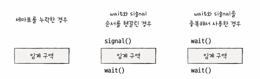 ์ธ๋งํฌ์ด๋ ์ฌ์ฉํ๊ธฐ ๋ถํธํ ๋ฉด์ด ์์ต๋๋ค. ๋งค๋ฒ ์๊ณ ์์ญ ์๋ค๋ก ์ผ์ผ์ด wait๊ณผ signal ํจ์๋ฅผ ๋ช ์ํด์ผ ํ๊ณ ์๋ชป๋ ์ฝ๋๋ก ์๊ธฐ์น ๋ชปํ ๊ฒฐ๊ณผ๋ฅผ ์ป์ ์๋ ์์ต๋๋ค.