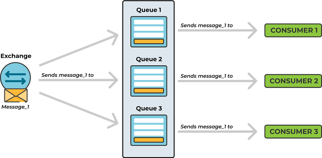 - Exchange๋ฅผ ํตํด ๋ฉ์์ง๋ฅผ ๋ค์ํ ๋ฐฉ์(Direct, Topic, Fanout)์ผ๋ก ๋ผ์ฐํ ๊ฐ๋ฅ.