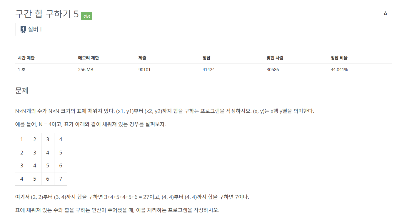 ๋ฐฑ์ค 11660: ๊ตฌ๊ฐํฉ ๊ตฌํ๊ธฐ 5(๋งํฌ)