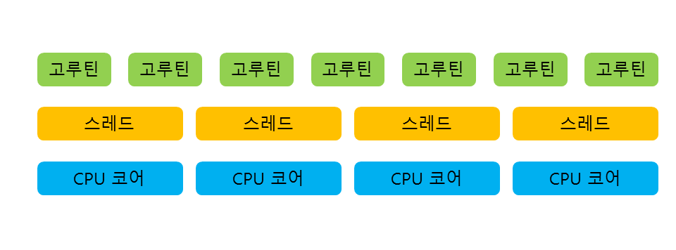 - Syscall and Blocking: ๊ณ ๋ฃจํด์ด ์์คํ ํธ์ถ์ ํ๊ฑฐ๋ ๋ธ๋กํน ์ฐ์ฐ์ ์ํํ๋ฉด, ํด๋น ๊ณ ๋ฃจํด์ ๋ธ๋ฝ ์ํ๊ฐ ๋๊ณ ๋ค๋ฅธ ๊ณ ๋ฃจํด์ด ์คํ๋ฉ๋๋ค.
