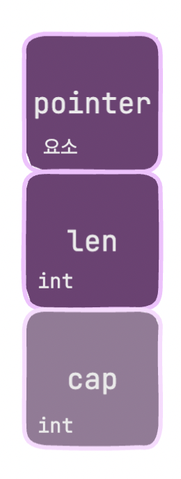 slice1 := []int{1, 2, 3} // โถ len:3 cap:3 ์ฌ๋ผ์ด์ค ์์ฑ