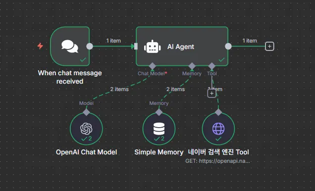 μ€μμ κ°μ¬λμ AI Agent κ°μμμ n8nμ νμ λ±μ₯νλ Agent κ΅¬μΆ νλ«νΌμ λλ€. ν΄λΉ κ°μμμλ AI Agentλ₯Ό μ²μ ꡬμΆνλ Begineerμκ² n8nμ ν΅ν΄ μ λ¬Έ μν€κ³ μμ΅λλ€. μλλ OepnAI(GPT 4.0-mini) λͺ¨λΈ(LLM)κ³Ό λ€μ΄λ² κ²μ μμ§ λꡬ(Tool)λ₯Ό μ°κ²°ν AI Agentμ λλ€.